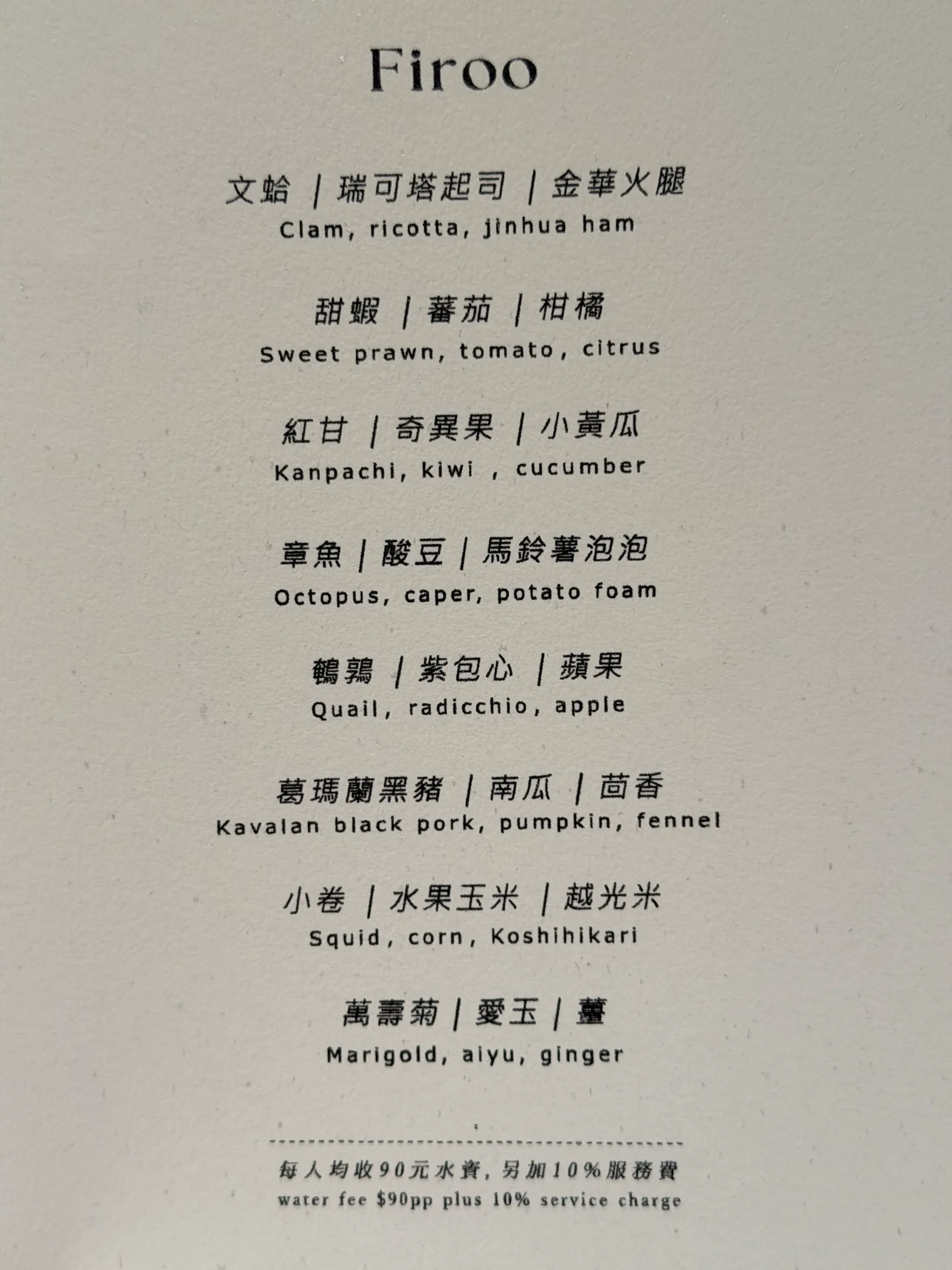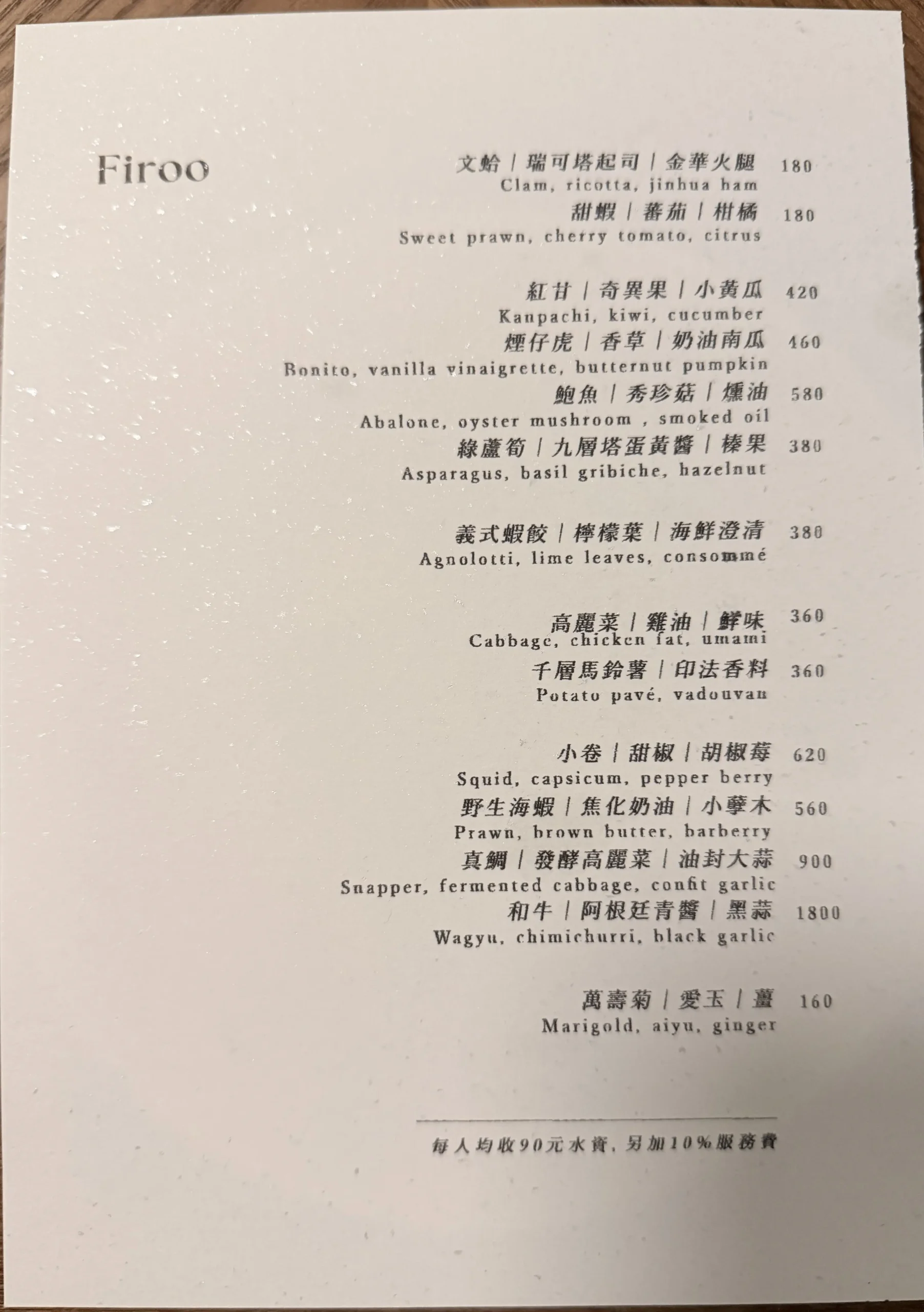 隱身在竹北勝利六街的 Firoo,是間以澳洲直火料理為特色的餐廳,在 2025 年獲米其林指南收錄。兩位主廚過去曾在澳洲生活,對當地的直火料理文化十分著迷,因此決定將這股熱情帶回台灣,店名Firoo 是取自 fire(火)與 roo(袋鼠的暱稱),象徵著主廚們對澳洲獨特風味的深厚情感。