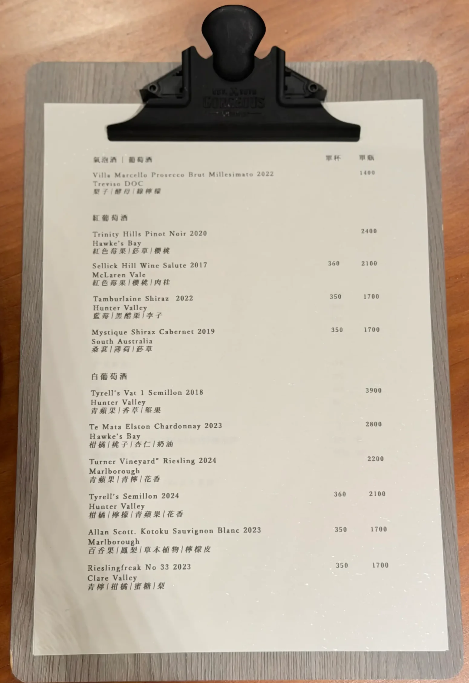 酒單提供給大家參考,酒類以葡萄酒為主,酒單上也有註明風味與香氣