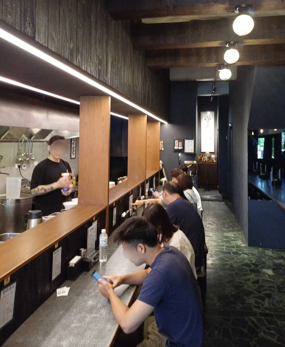 走進店內,是拉麵店常見的細長吧台格局,讓人面向開放式廚房而坐,從備料到出碗的每個細節都一覽無遺,整體氛圍沉靜而專注