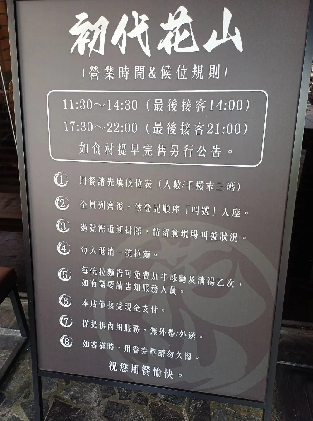 門口的立牌清楚寫著用餐須知與候位規則,儘管排隊人潮多也不混亂