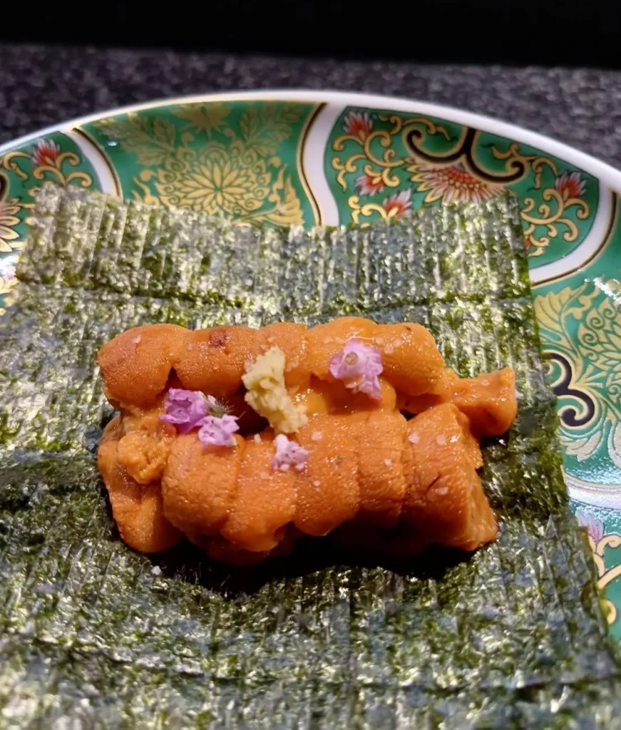 海苔新鮮現烤,酥香迷人,襯托出海膽的濃郁鮮甜,滑順口感入口即化,甜味純淨不苦,濃郁海味令人意猶未盡!