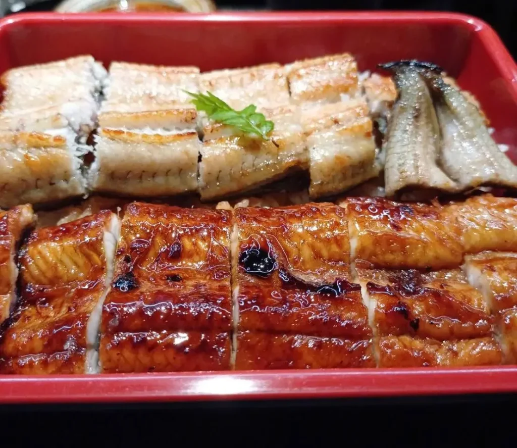 鰻魚三吃,首先將鰻魚飯分成三份,一吃:吃鰻魚的原味,撒上山椒粉後品嚐;二吃:將鰻魚飯盛進小碗中,根據喜好加入蔥花、小海苔片、山葵泥和白芝麻,拌一拌一起吃;三吃:鰻魚飯加入調味料後,再沖下 Chef 特製的魚高湯,製成茶泡飯,三種吃法都令人驚豔!