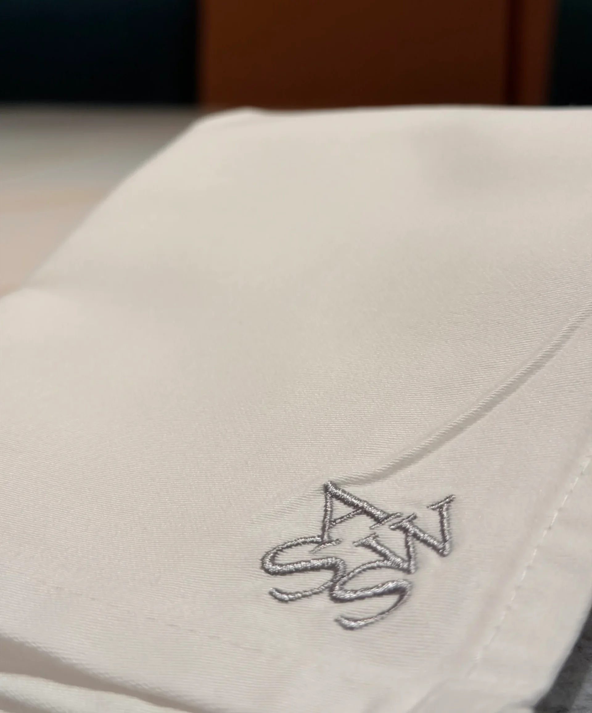 餐巾上有著SSAW的刺繡logo,SSAW目前的套餐價格是午餐 $1580/人,晚餐餐 $2680/人,每人另收100元水資、另加10%服務費