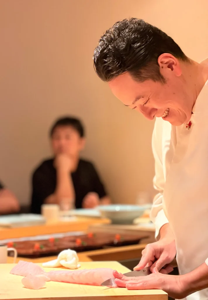 天本師傅個性開朗、幽默風趣,板前氛圍輕鬆自在,但談笑間細節也不馬虎,從漁獲的選擇到刀工與調味,處處可見其細緻與嚴謹