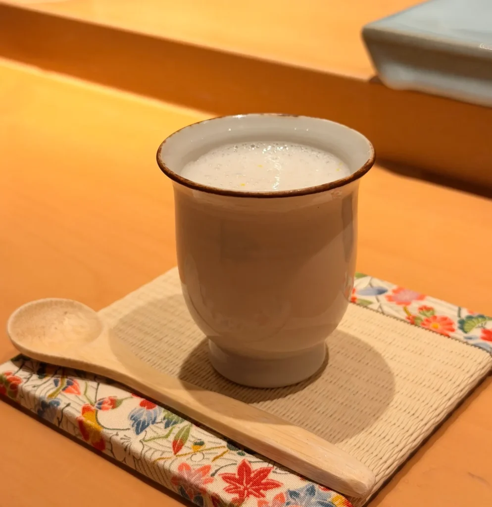 上方覆上一層細緻的白子泡沫,入口輕盈,口感滑嫩,白子的濃郁與柔滑在口中慢慢化開
